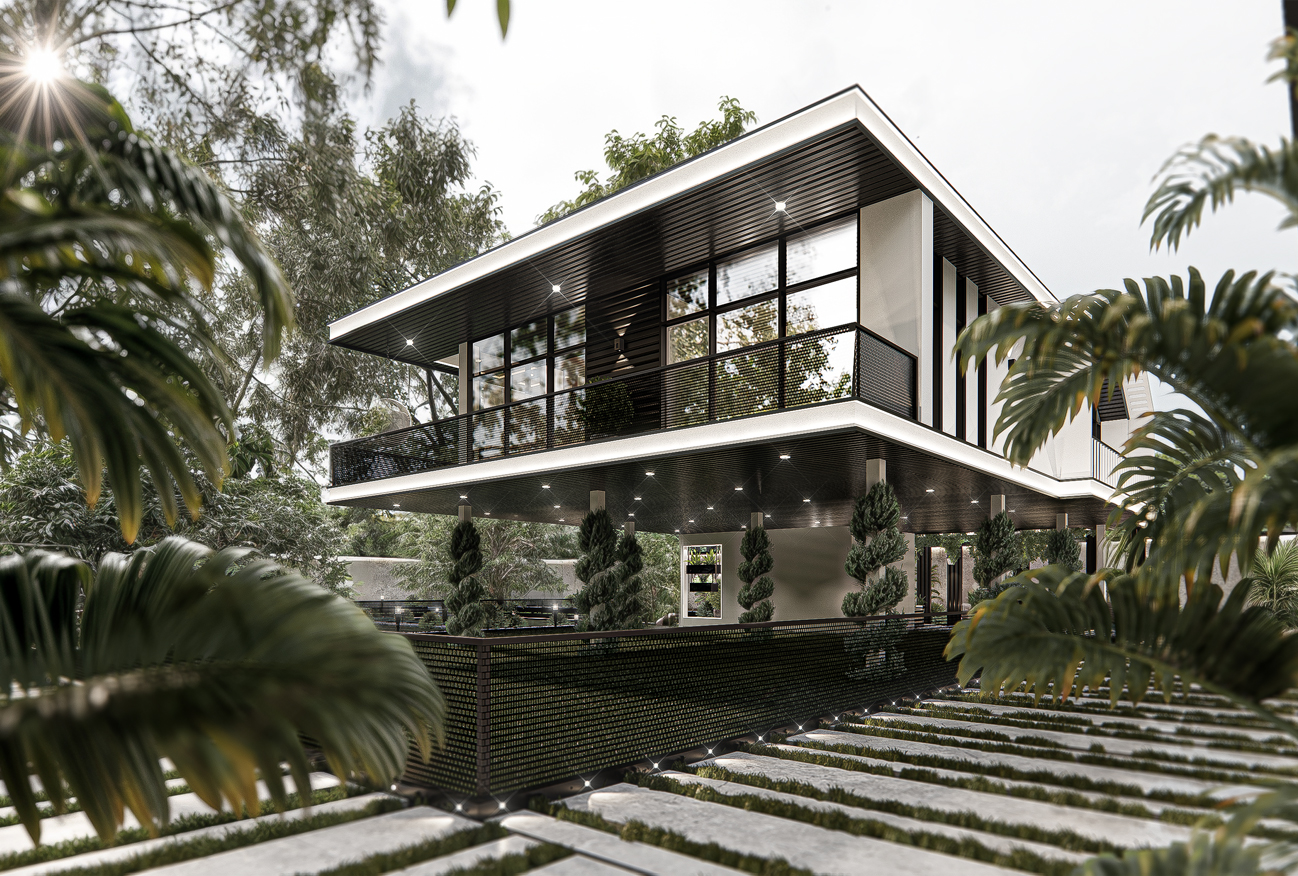 This villa, with its modern design inspired by nature, offers a unique experience of living in a serene and lush environment. The extensive glass surfaces, combination of natural materials, and intelligent lighting create a vibrant and inviting atmosphere.